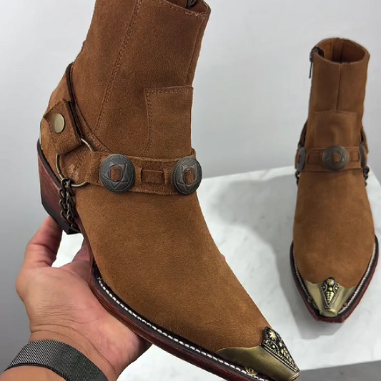 Men's Suede Boots with Metal Buckle Detailing