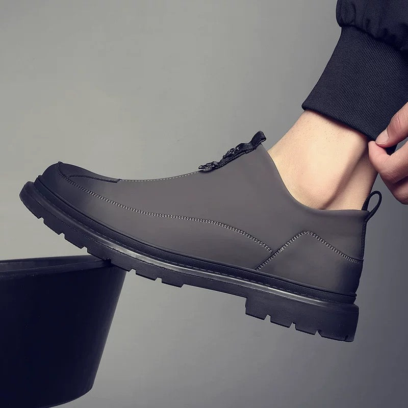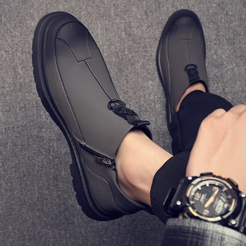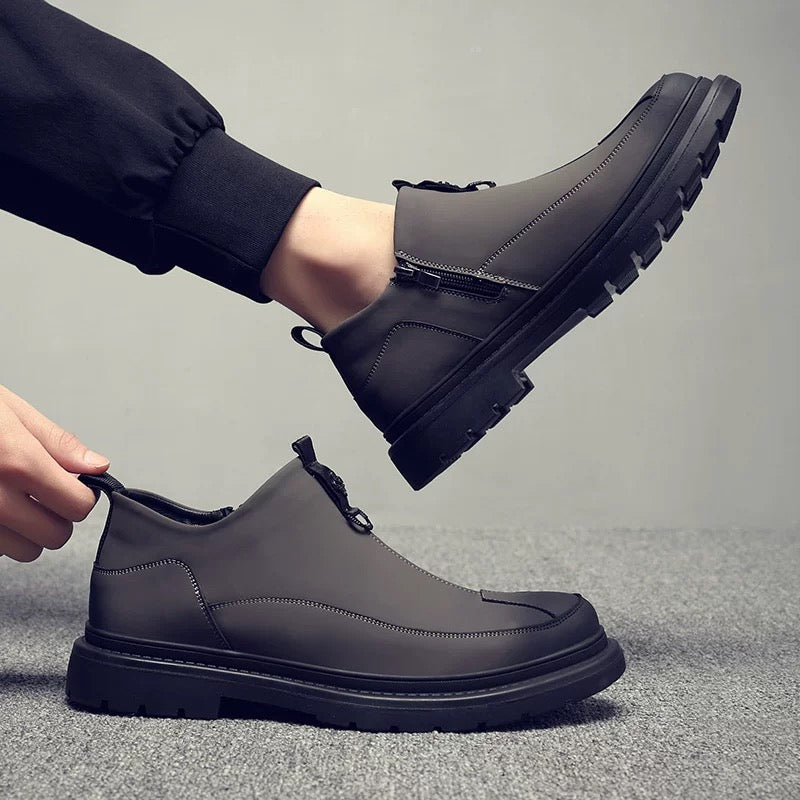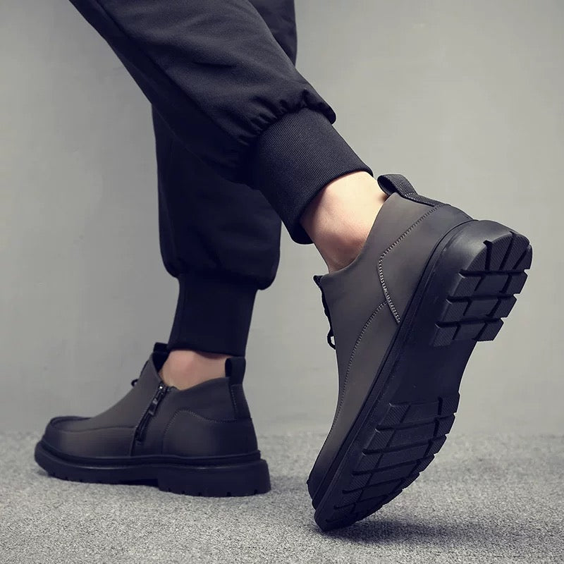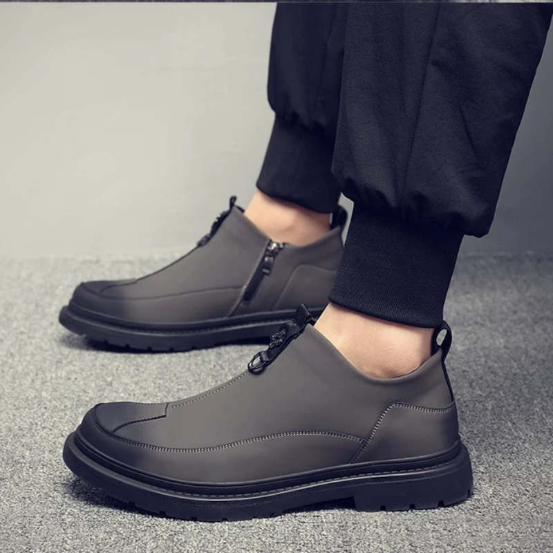 Men's Leather Zip-Up Casual Boots with Thick Sole