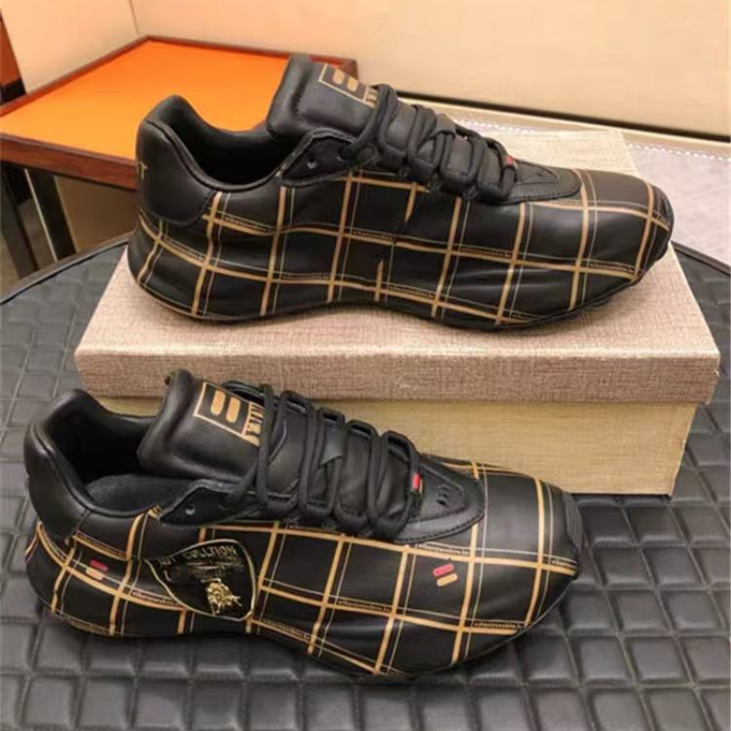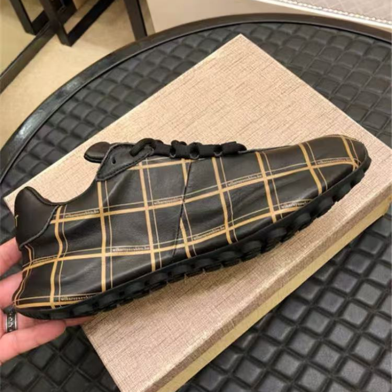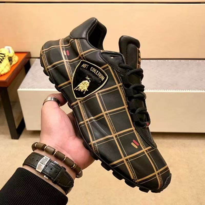 Men's Plaid Lace-Up Casual Boots with Embroidered Patch