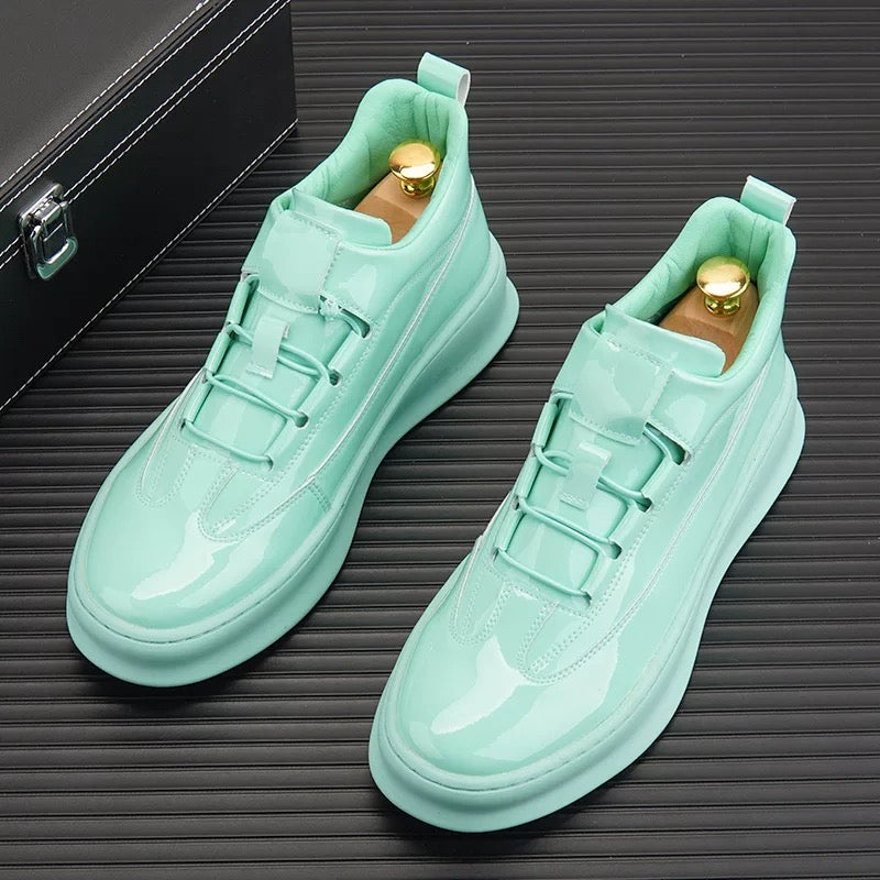 Men's Shiny Slip-On Sneakers with Metallic Accents