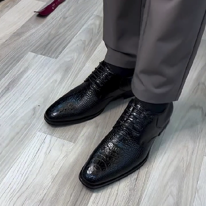 Men's Textured Leather Dress Shoes with Lace-Up Closure