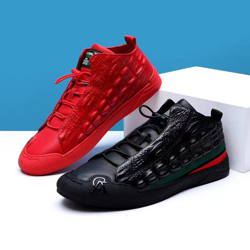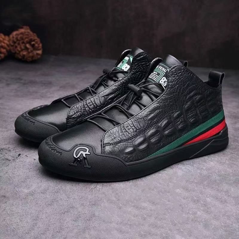 Men's Textured Leather Lace-Up Casual Shoes with Stripes
